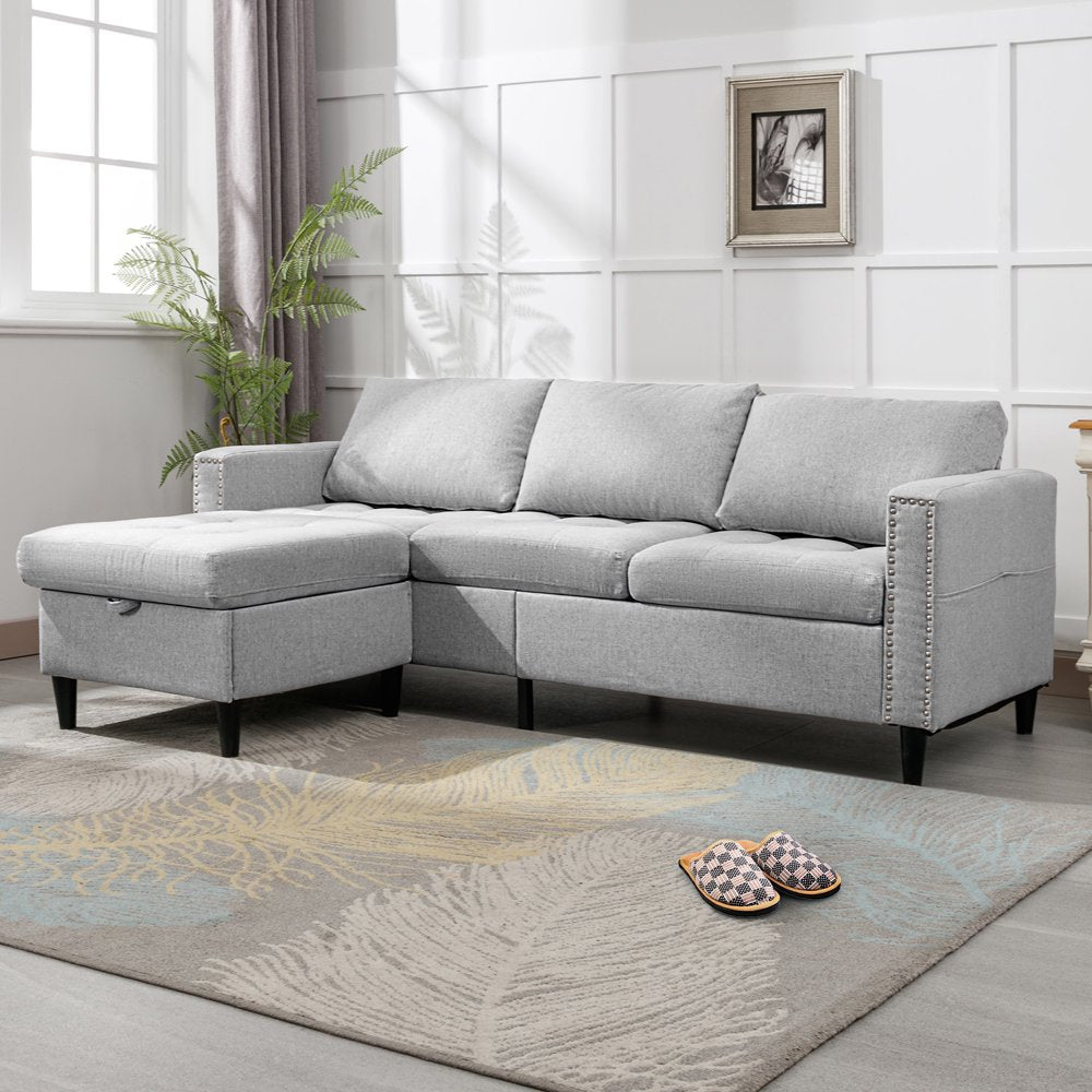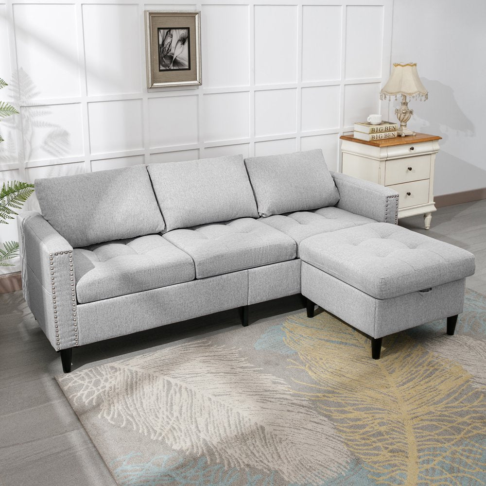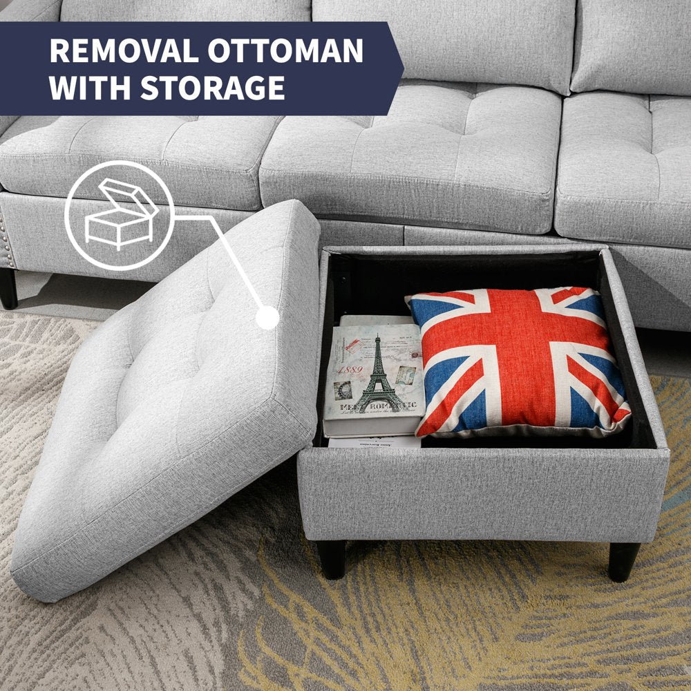 ✨【Flexible Storage Ottoman】Our 3 seat L shaped couch with chaise includes a convenient movable and flexible storage ottoman. The expanded storage space of this sectional sofa with chaise allows you to effortlessly organize your daily essentials, including books, magazines, remote controls, and more.