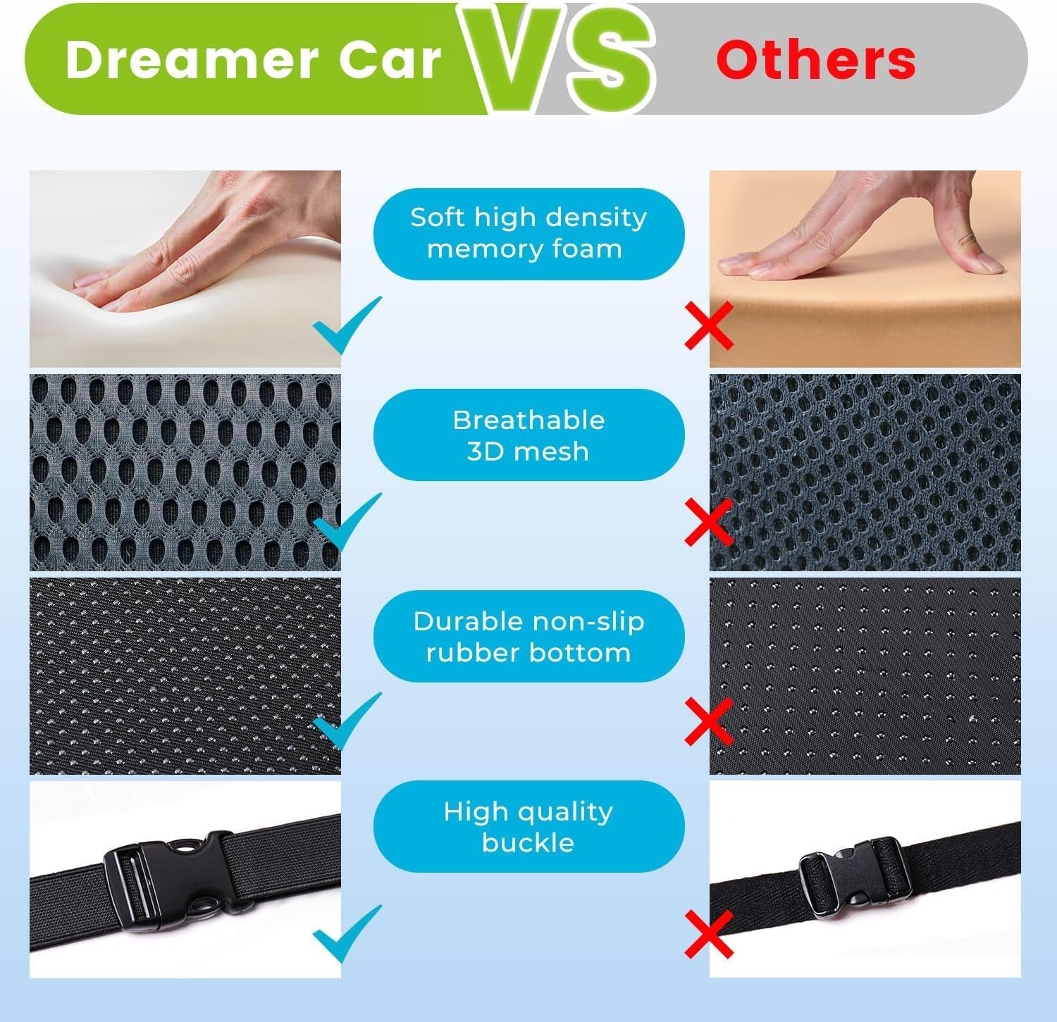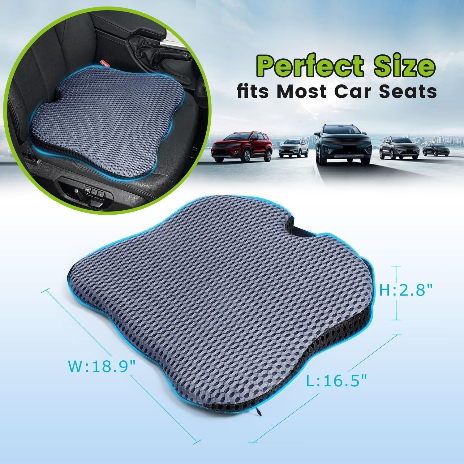 Heat and Weight Responsive Memory FoamFirmness for all memory foam products changes with temperature. Our travel seat cushion will be softer in warm and firmer in cold temperatures. Room temperature is ideal for optimal performance.In the meantime, our cushion for car seat driver for comfort will provide less support with increasing weight. | Non-slip Rubber DesignRubber bottom and elastic adjustable strap double keep your car seat pillows for driving tightly. | Invisible Zipper is Skin FriendlyThe cover of adult booster seat for car often contacts the skin , invisible zipper of the car booster seat for short drivers can avoid our skin from getting scratched. In the meanwhile,the ventilate mesh of the auto seat cushion can avoid overheating of our body. | Keeps Clean, Stays FreshThe cover of the seat cushions for cars is washable, which makes the car cushions for driving for short people easy to clean. In daily use, remove the cover, then machine wash or hand wash and then tumble dry. |