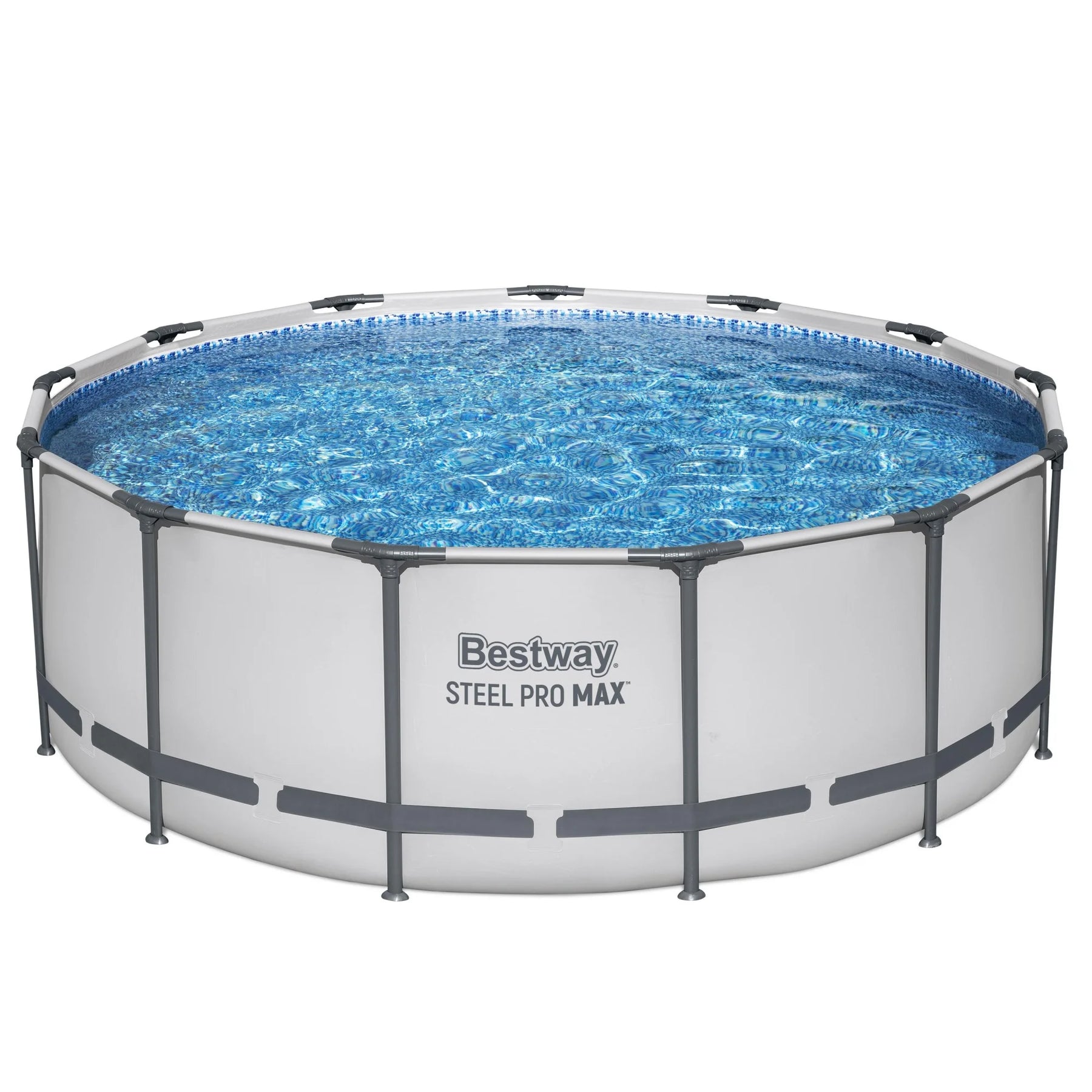 It doesn't get any better than having your own backyard pool! Enjoy a summer full of fun with the Bestway Steel Pro MAX Above Ground Swimming Pool. Featuring an ultra-durable construction, this outdoor swimming pool is made with a corrosion-proof steel frame equipped with a FrameLink System for a sturdy and secure connection. The frame is compatible with additional attachments, such as cup holders (sold separately). With a DuraPlus liner, this pool is reinforced for strength and prevents punctures. Including a filter pump, ladder, and pool cover, you'll have everything you need for the perfect pool day. Equipped with a simple setup and take-down process, you can easily store this pool away in the off-season. No tools are required, and a hose connects to the built-in flow control valve to quickly and efficiently drain out the pool water. Spend your hot summer days in the water with the Steel Pro MAX Above-Ground Swimming Pool from Bestway. Disclaimer: Please review your HOA rules and restrictions before purchasing this product. Not all housing agencies permit private above-ground pools.